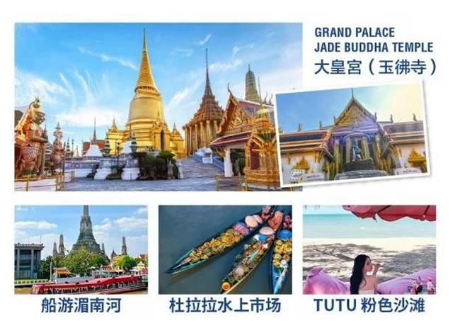 1.【大皇宮 +玉佛寺】早餐后,前往泰國(guó)標(biāo)志建筑【大皇宮】,是泰國(guó)歷代王宮保存最完美、規(guī)模最大、最有民族特色的王官,被稱為“泰國(guó)藝術(shù)大全 ” ,與大皇宮相鄰,是全泰國(guó)唯一沒有僧侶住持的佛寺,供奉著一座價(jià)值連城的國(guó)寶---玉佛 ,是泰國(guó)的三大國(guó)寶之一。2.【長(zhǎng)尾船游湄南河】乘坐泰國(guó)獨(dú)有的長(zhǎng)尾船,暢游在湄南河中。既可以欣賞水上人家又可以放松心情,又可以欣賞到曼谷獨(dú)有的湄南河景色、鄭王廟 。河岸兩邊的景色和風(fēng)光一定會(huì)給您帶來不一樣的體驗(yàn)。3. 【廊1919】曼谷新晉潮人打卡低,是由必沙布家族里的高官波山舒巴本先生 1850 年型建的 。那時(shí)是火船運(yùn)輸最 鼎盛的時(shí)期,船只往來川流不息?;鸫瘸俗鳛榇a頭之外,還建有一座媽祖廟,以便出海的船員和附近的居民祭拜。1900 年期間,這里逐漸改為辦公室、住家和倉(cāng)庫(kù)。員工宿舍在樓上,樓下則為辦公室 。在這期間,這里也曾作為中 國(guó)商人協(xié)會(huì)的中心,對(duì)華人商業(yè)發(fā)展起了積極的推動(dòng)作用。4.【國(guó)際人妖秀】 (游覽時(shí)間不少于 60 分鐘) ,欣賞佳麗名媛們傾情奉獻(xiàn)給大家 的精湛演繹,陶醉于紅袖飄舞、婀娜 多姿、千嬌百媚的藝術(shù)神韻而會(huì)感嘆她們的百變神奇。溫馨提示 : 參觀大皇宮玉佛寺時(shí)男士須穿長(zhǎng)褲,女士需穿過膝長(zhǎng)裙,女士不可穿露背、吊帶上衣及超短裙。