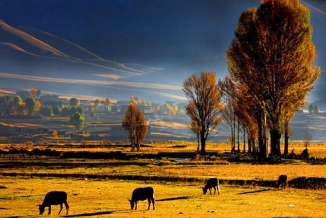 早餐后賞萬畝【青楊林】,數(shù)以萬計的青楊林像衛(wèi)兵守護(hù)著清清傍河,守望著天堂里的香格里拉,春天,一片碧波蕩漾,春意盎然,秋天則燦若云霞,金黃灑滿大地,無需裝飾就是一幅完美的自然畫卷。然后觀【色拉草原風(fēng)光】,翻越【波瓦山】,欣賞迷人的【赤土】河谷、前往令人神往的【亞丁景區(qū)】。我們將轉(zhuǎn)乘景區(qū)的觀光車,(觀光車費用:120元/人費用自理)翻越【牛郎神山】(海拔4760米),抵達(dá)目的地亞丁景區(qū)【扎灌崩】,步行十分鐘左右,到【沖古寺】,(藏語意為填湖造寺,海拔3900米)欣賞由草地、森林、小溪和嘛呢堆組成的天然沖古草坪,朝觀神山【仙乃日】(意為觀世音菩薩,海拔6032米)。然后乘坐電瓶車(約6.5公里,往返80元,單程50元,費用自理)或者步行(步行3個小時),到達(dá)【洛絨牛場】,遠(yuǎn)觀【夏諾多吉】(意為金剛手菩薩,海拔5958米),【央邁勇】(意為文殊菩薩,海拔5958米),站在央邁勇神峰下,轉(zhuǎn)身向后瞧去,由群山環(huán)繞著的寬闊峽谷間,森林、草地、溪流和睦地各守一方,這氣勢莽莽的自然景觀,讓人流連忘返。然后可步行或者騎馬(約3小時,騎馬往返費用自理)到達(dá)【牛奶?!?。因牛奶海和五色海海拔高,客人務(wù)必根據(jù)自身實際情況選擇自費騎馬前往游覽. (牛奶海在央邁勇的山坳里,呈扇貝形,中間是碧藍(lán)的雪水,四周雪山環(huán)繞,湖水清瑩碧藍(lán)以其玲瓏秀雅水色翠藍(lán)而著名)。繼續(xù)向前便到達(dá)美麗的【五色海】又名登崇措(五色海由于光的折射下,產(chǎn)生五種不同顏色而得名:其真名為“單增措”,它位于仙乃日與央邁勇之間,海拔4600米,湖面呈圓形。面積0.7公頃,冰谷下伸至湖畔,雪山倒影湖面,呈現(xiàn)奇幻的色彩,是藏區(qū)著名的圣湖)。上山時可觀賞野生動物、高山花蕊、雪山森林、冰川、湖泊、河流,體驗人與自然和諧相處的天然妙趣,讓神山圣水與心共鳴,盡情沉醉在夢幻之地。下午6點返回景區(qū)門口。宿香格里拉鎮(zhèn)。